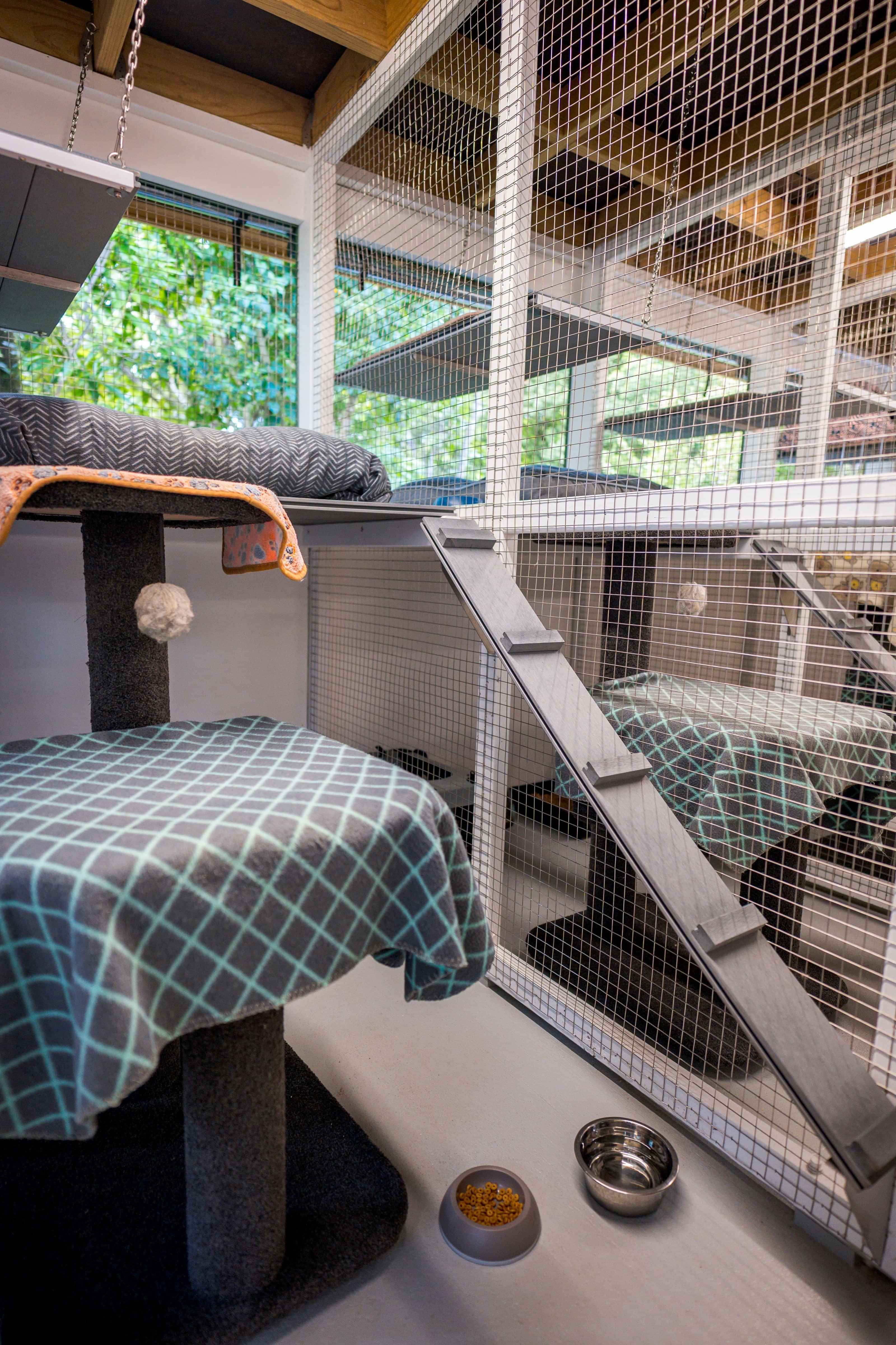 The Outdoor-Facing Individual Units combine privacy with connection to the natural environment. While part of the main cattery building, these units face outdoors and offer views of surrounding greenery and bush.